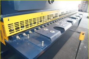 2.Backguage: Indstilling på værktøjssæt, sving med op-værktøjssæt, drevet af 0,55KW elmotor. Den bageste stop er udstyret med elektrisk justering og manuelle justeringsanordninger, og digital display er tilgængelig til visning af størrelsen på stopperen og klipningstiderne.